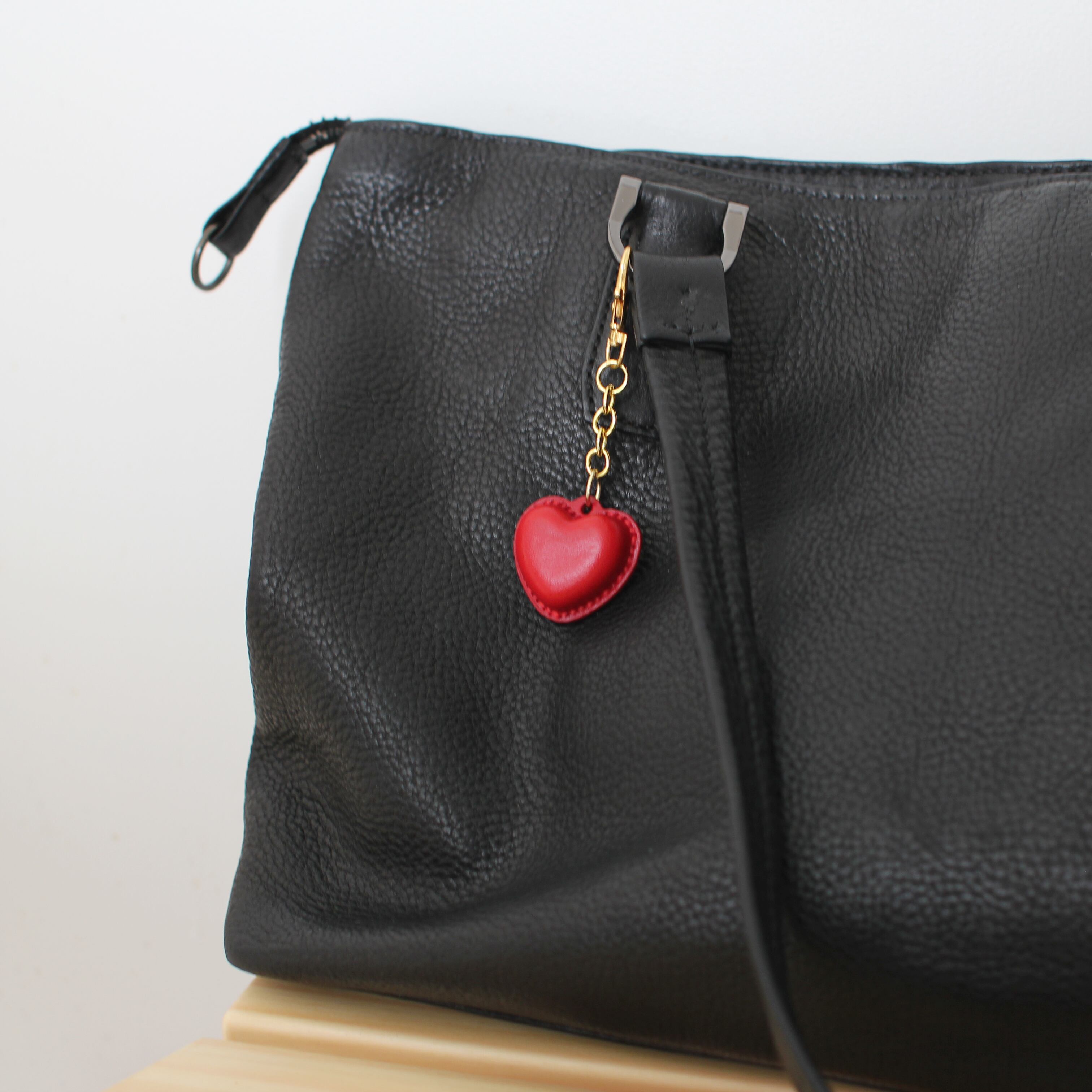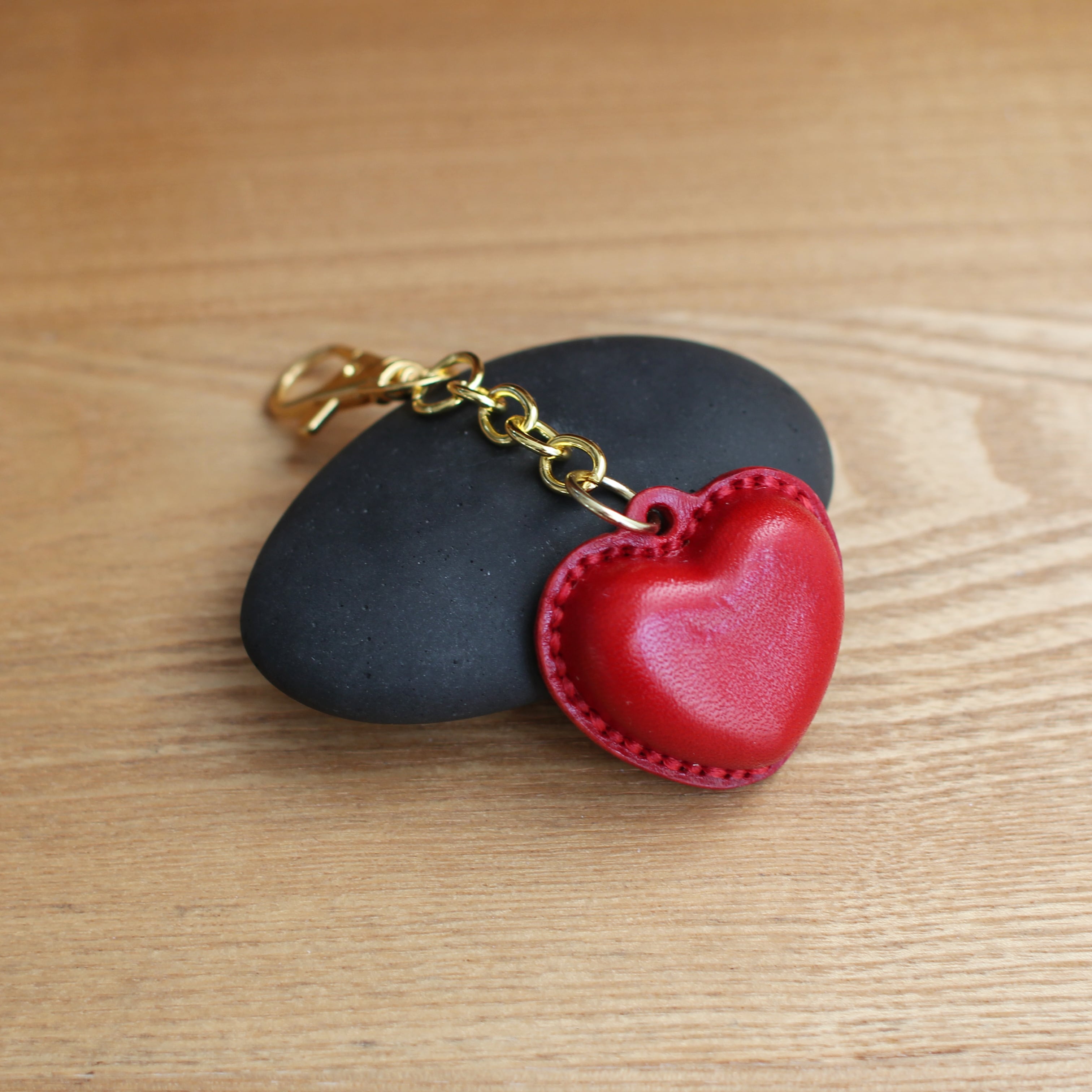 赤いハートのボンボンショコラの手縫い本革バッグチャーム【栃木レザー使用】