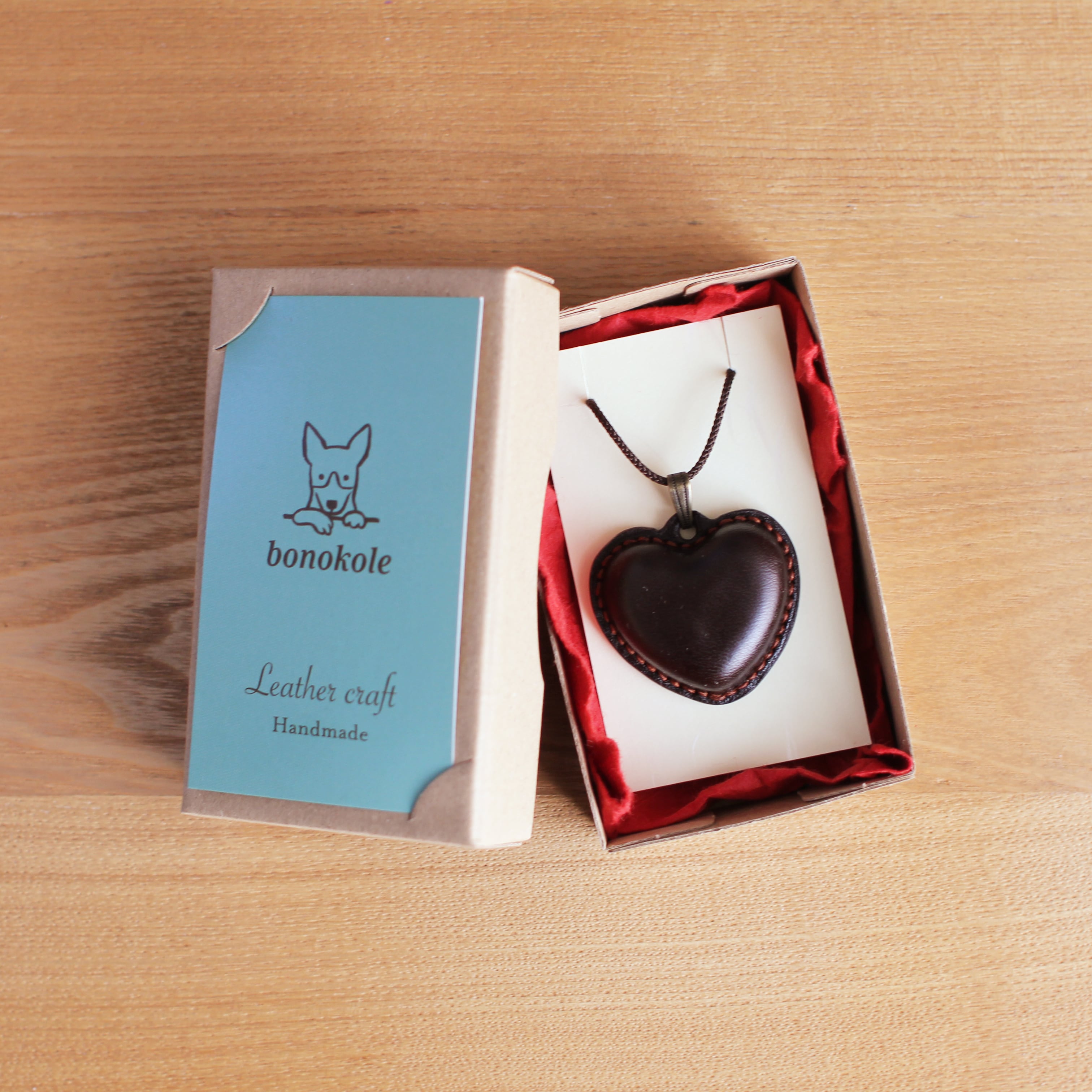 ハートチョコの手縫い本革ペンダント【イタリア製レザー使用】